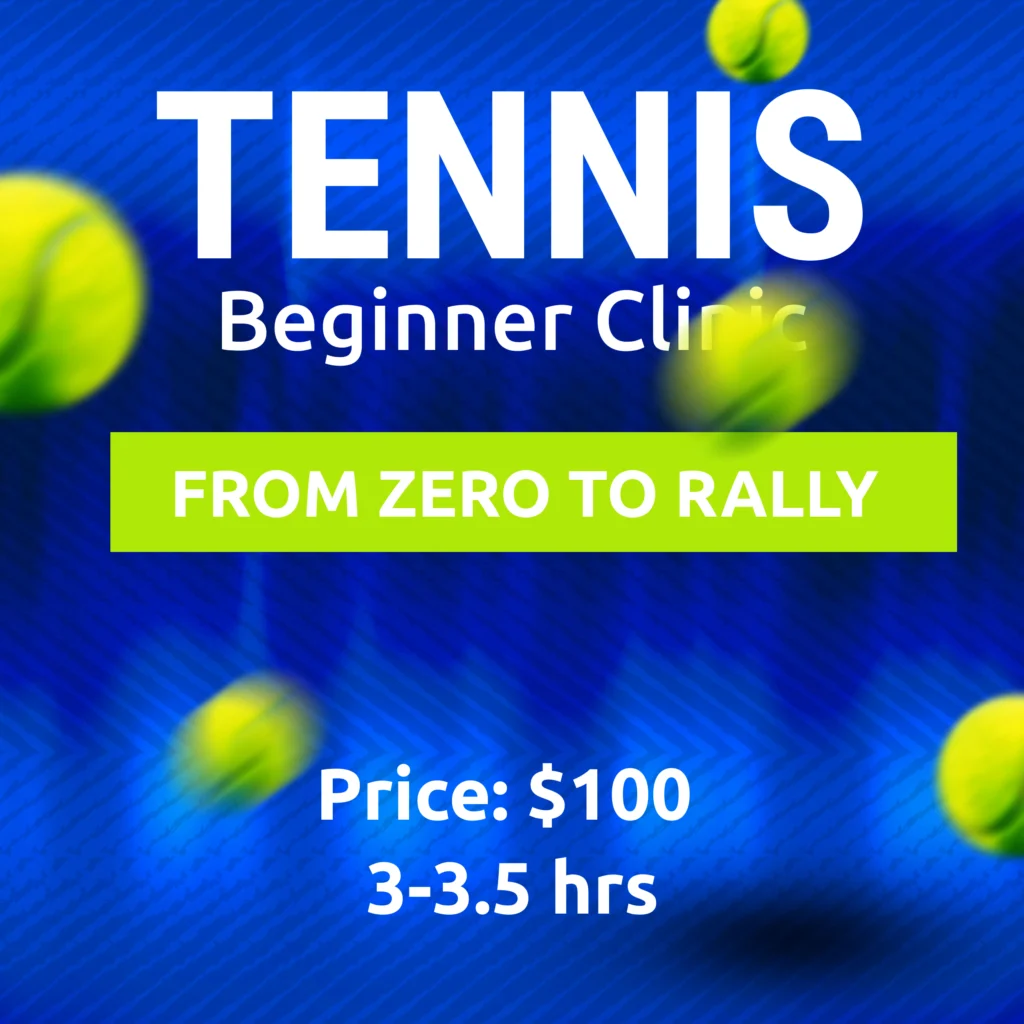 Learn tennis from scratch and go from zero to being able to rally at our fun-filled in-person Tennis Beginner Clinic! With snacks and drinks